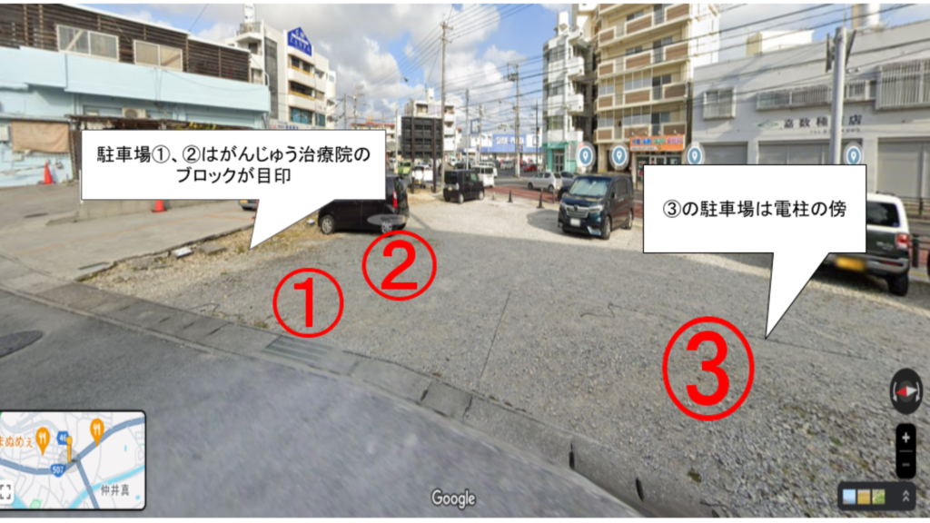 当院から徒歩1分の場所に、駐車場3台をご用意しています。